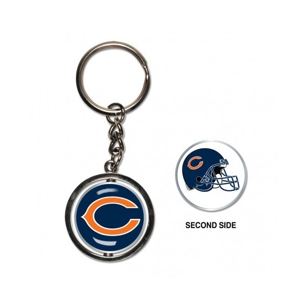 The nickel plated spinner key ring with Chicago Bears logos is a stylish and practical accessory for any Bears fan. The two-sided domed decorated disc adds a touch of flair to your keys, while the spinning motion provides a fun distraction while waiting in line or passing the time. The 1 3/8 diameter circle allows for easy spinning and adds a unique element to your key ring. Show off your team spirit with this playful and functional accessory!